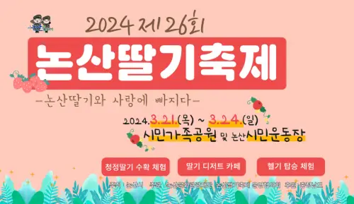 작년에 이어 이번 204년에도 논산에서 딸기 축제가 계획되어 있습니다. 현재 디저트카페 부스, 버스킹 공연, 향토음식점, 푸드트럭, 딸기 수확체험 이벤트 등을 준비하고 있는 모습입니다.